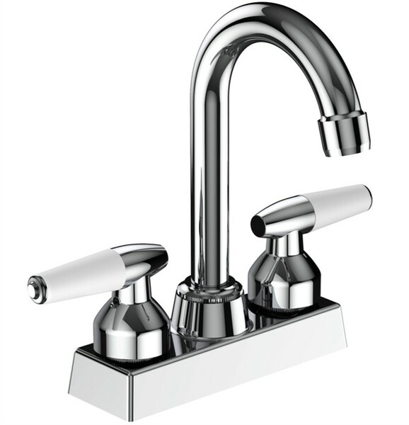 MEZCLADORA DE 4” PARA LAVABO CON CUELLO ALTO DE LATÓN Y MANERAL DE PALANCA.